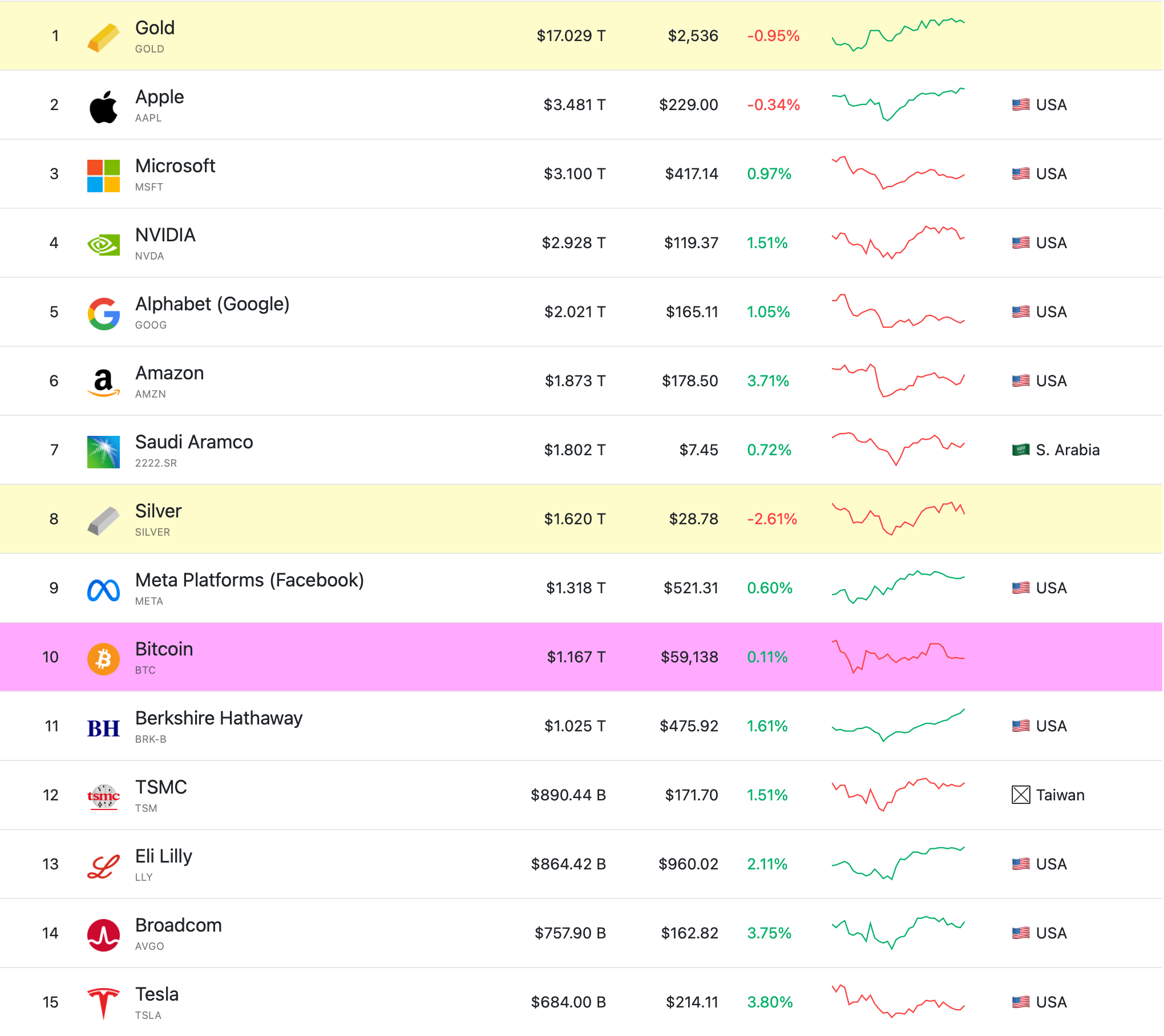 Ryan :好的,所以我想深入探讨这个问题。虽然它是一个规则的例外,但我想说,这也是很多 ETH 持有者,包括可能像 David 和我这样的 ETH 多头支持者的预期。比特币现在是全球第 10 大资产,以太坊是第 34 大资产。目前它的市值是 1.2 万亿美元。比特币逆转了重力或熵增等影响大市值资产的外部力量,达到了数万亿美元的规模。
