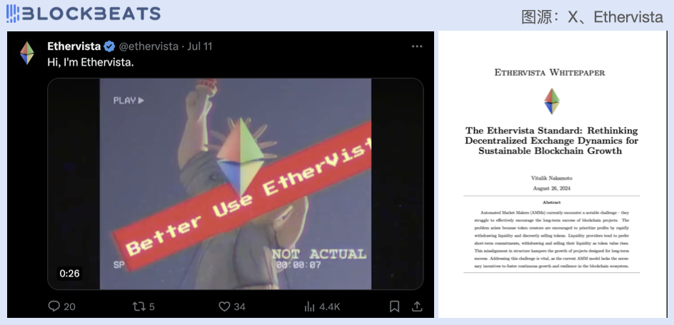 EthervVsta称,其机制特色在于挑战了 Uniswap 的 AMM 模式。