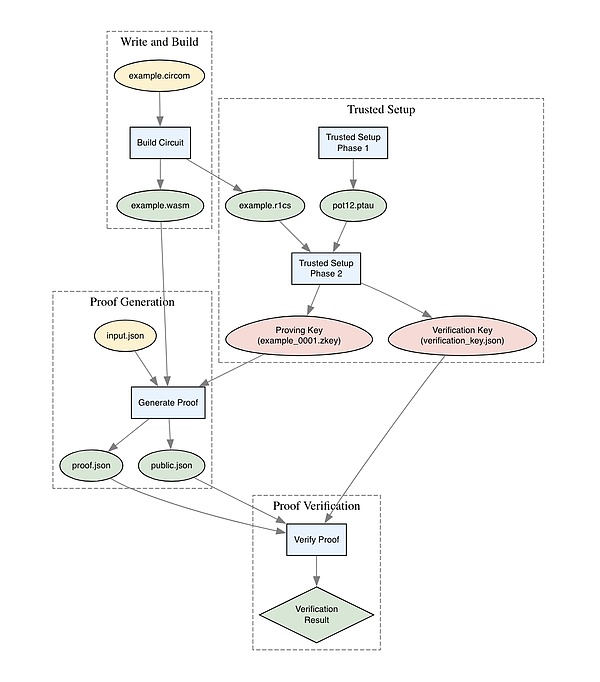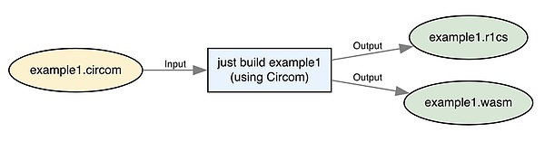 这是调用 circom 创建 example1.r1cs 和 example1.wasm 文件的一个简单包装。你应该会看到类似以下内容: