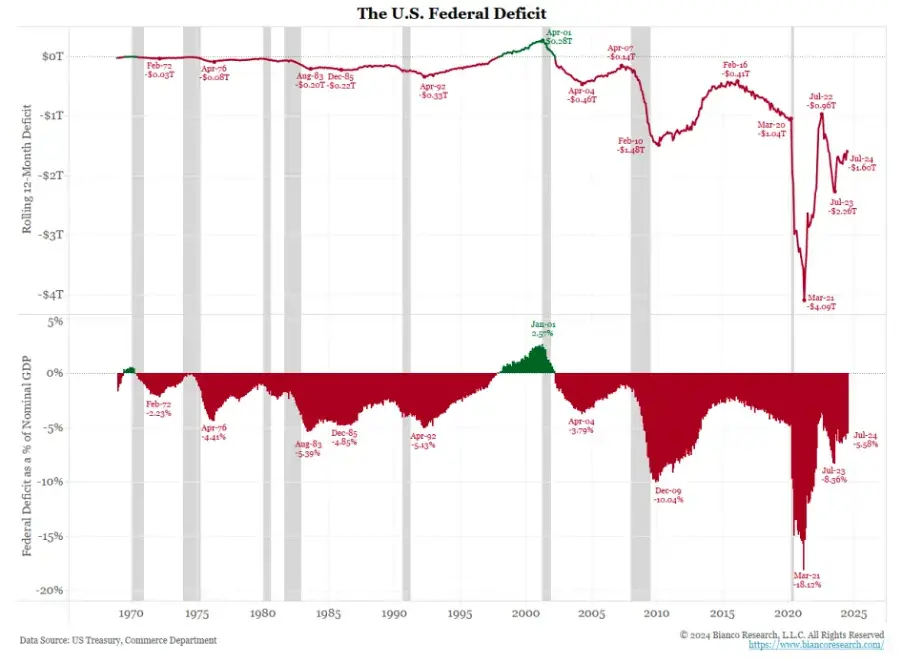 然而,这一切在 2023 年 8 月的杰克逊霍尔会议上发生了变化。鲍威尔暗示,美联储可能在 9 月会议上暂停加息。然而,通胀的阴影仍然笼罩市场,主要因为政府支出的增加是推动通胀的主要因素,而这种趋势没有减弱的迹象。