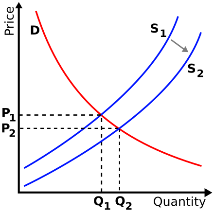 即 Gas 的降低,刺激了用户需求。从经济学来看,当供给曲线从 S1 移动到 S2 时,价格均衡从 P1 降低到 P2,并诱发了需求从 Q1 增加到 Q2。