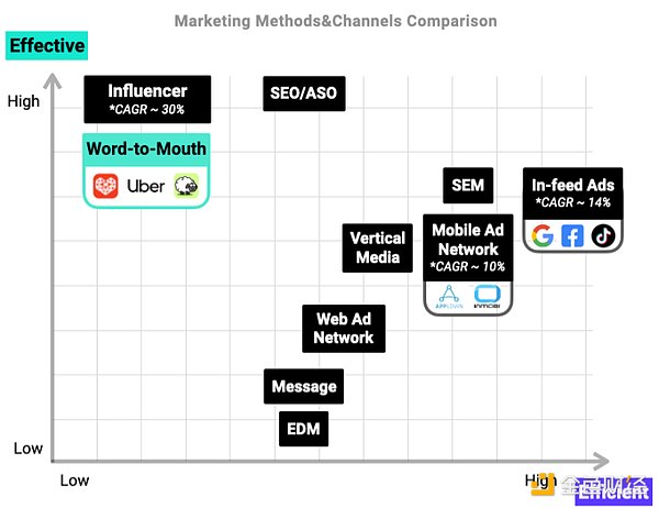 Web2 时代的营销方法与渠道效果比较,数据来源:Miniton