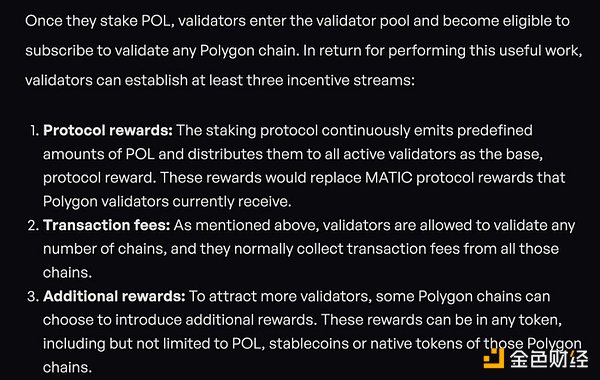 这里的想法非常直接,作为一个质押者,你将把你的权益委托给验证者,验证者将通过通胀周期铸币,他们将从聚合者那里收取费用收入,他们还将从作为Polygon网络一部分的CDK链中获得额外的代币奖励。