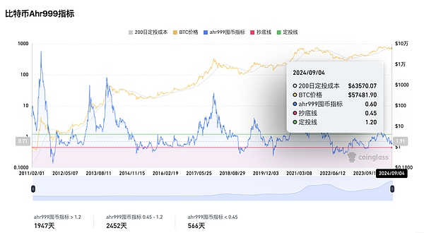 AHR999囤币指标:由微博用户ahr999创建,辅助比特币定投用户结合择机策略做出投资决策。