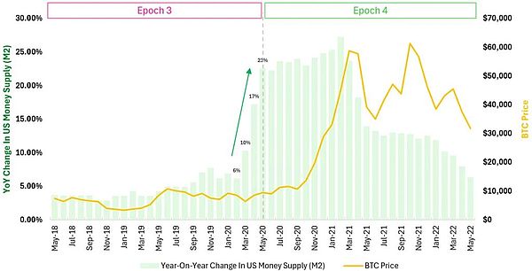 图11:2020年减半前后美国货币供应量(M2)和比特币价格