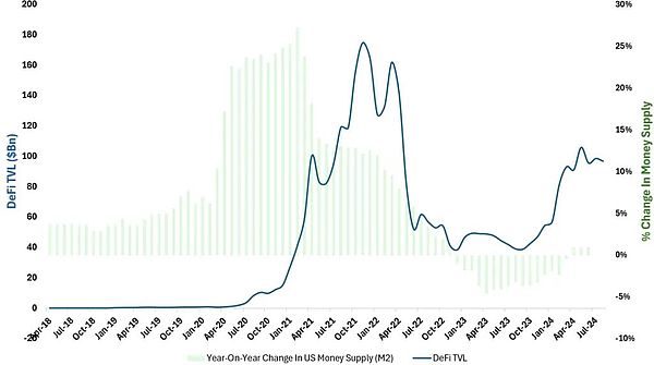 除了流入BTC的资金外,重要的是要认识到,货币印刷发生在DeFi春季之后,随后DeFi进入了DeFi Summer。许多投资者被链上诱人的收益机会所吸引,将资金投入加密货币和实用型代币,以捕获价值。由于所有数字资产之间存在很强的相关性,BTC自然也从中受益。