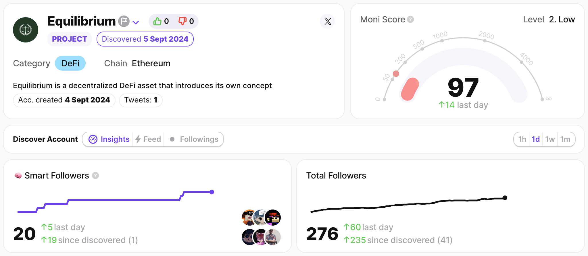 每日新项目或社区关注动态,按 X Alpha 帐号关注数量和增长筛选并排列