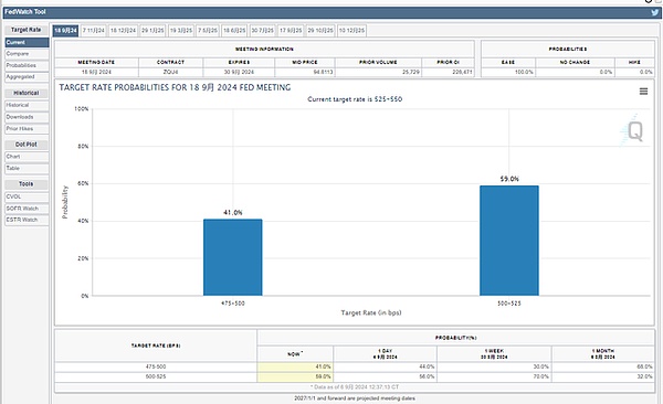 鉴于通胀放缓的趋势已经确立,叠加美联储高官最近的表态,9月降息几乎是板上钉钉的事。目前的最大分歧在于,降息25基点还是50基点,芝商所FedWatch工具显示,两者发生的可能性分别为41%和59%。