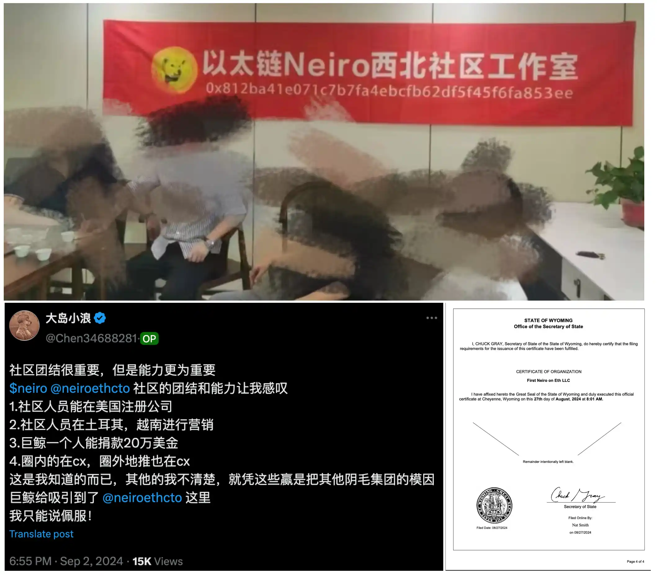 但二次归零后没多久,社交媒体上就渐渐出现了「Neiro 地推」的素材,当时许多 KOL 发推文讲很久没见过这样团队有格局、社区有凝聚力的 meme 了。