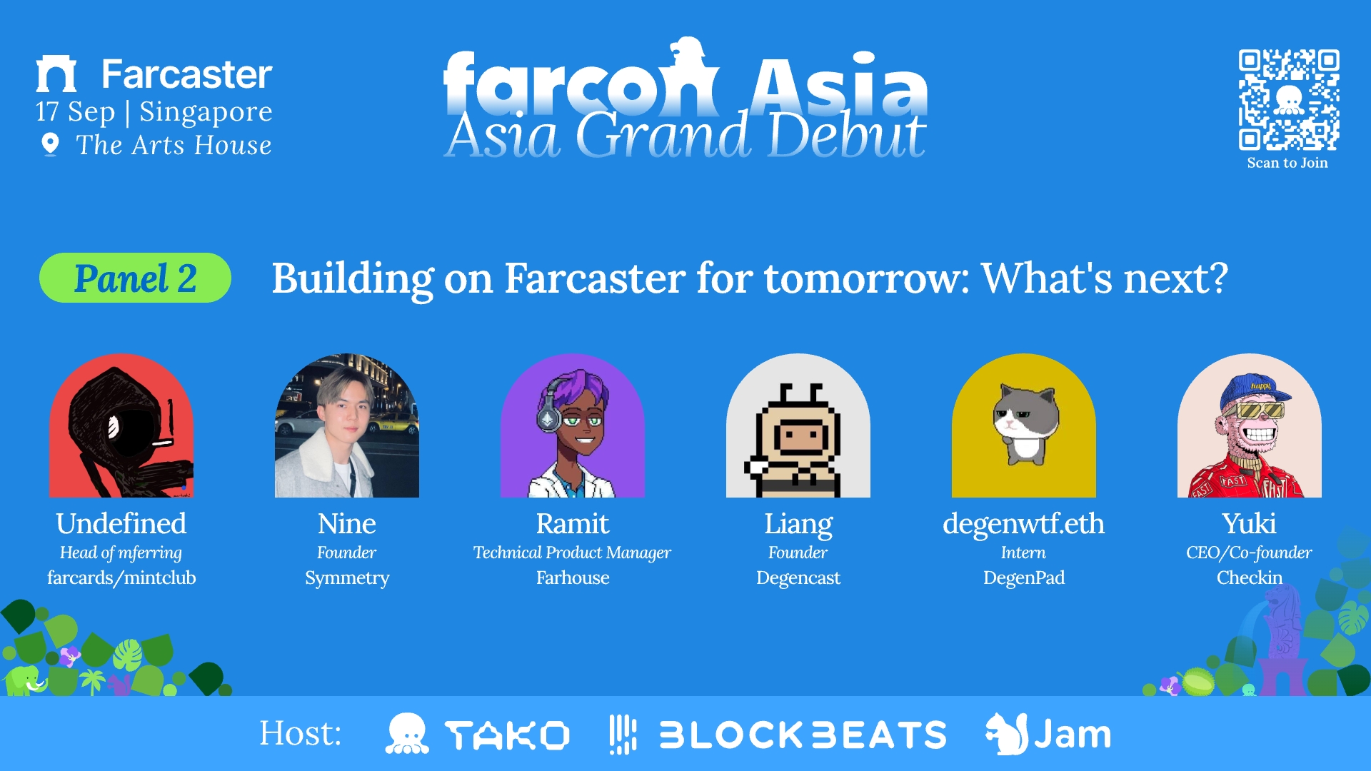 欢迎参加亚洲最大的 Farcaster 聚会,在这里享受日落饮品,与创始人、创造者和投资者轻松交谈与对话。