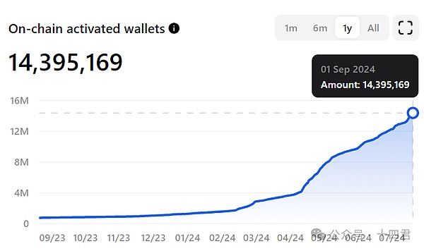 Ton生态依托于TG的10亿用户,经过半年的快速发展,Ton链上的活跃钱包数量已达到1400万,但渗透率仅为1.4%。