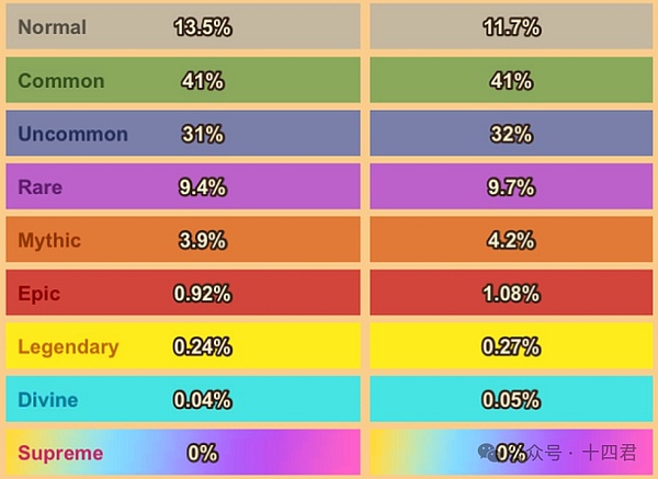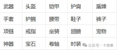 武器稀有度分为了9个大类,如下图所示: