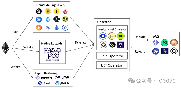 下图概括了在 EigenLayer 上参与再质押的方式和工作流。