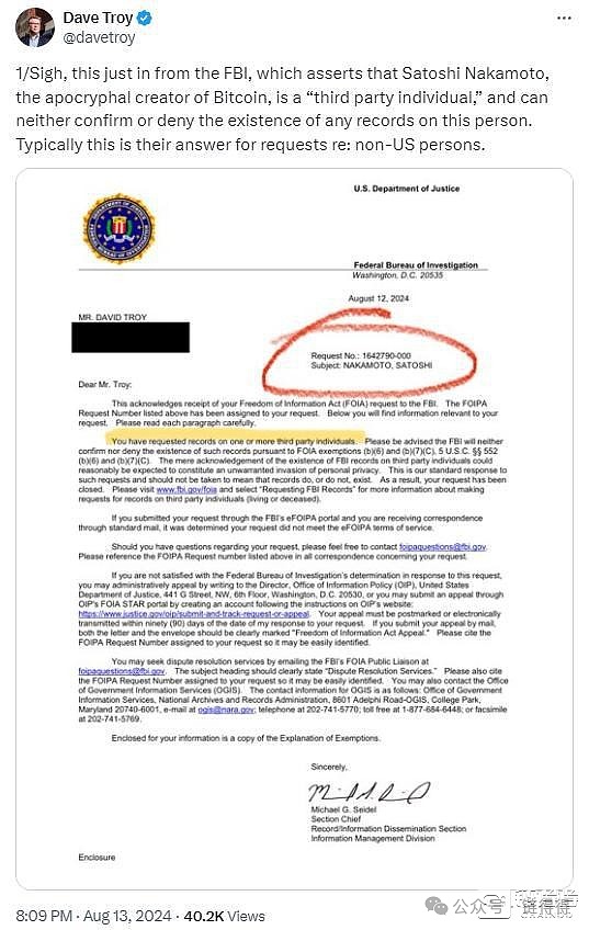 而考虑到资产安全和国家信息安全,账号中拥有上百万枚比特币的中本聪究竟是谁,也是FBI孜孜不倦寻求的目标——在比特币ETF通过之后,对冲基金、养老基金和银行开始大量投资比特币现货ETF,传统投资者也开始接受这一资产类别。截至8月15日,已有701只新基金向SEC报告持有比特币现货ETF,持有总数已接近1950支。