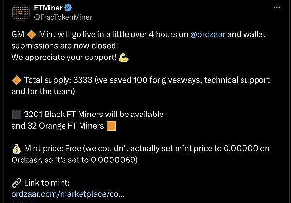 铸币价格:免费(实际上无法在 Ordzaar 上将铸币价格设置为 0.00000,因此将其设置为 0.0000069)