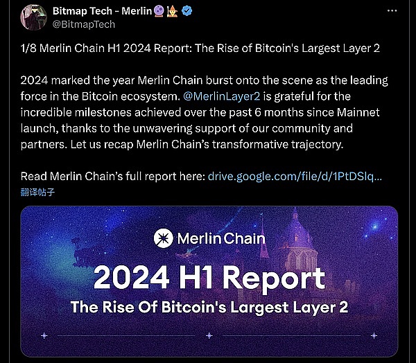 ● Merlin 上半年报告,Merlin Chain 在 2024 年成为比特币最大的 Layer 2。