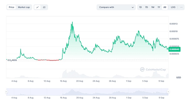 尽管被曝光,但大写NEIRO市值仍在FOMO上涨后飙升至1.7亿市值,以此而言,NEIRO的老鼠仓份额高达1.3亿美元,堪称MEME币当中最大的老鼠仓。但也正是丑闻加身,NEIRO上涨乏力逐渐滑落,在9月4日市值再度回到260万美元。