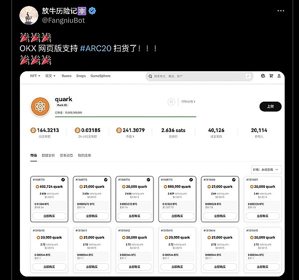 ● OKX @okxweb3 网页版支持 Atomicals #ARC20 扫货了!