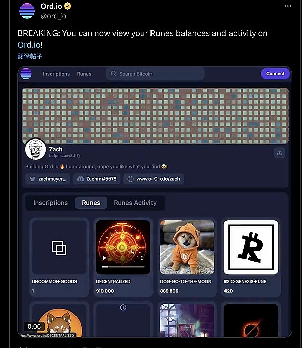 ● ord io 实习生:「突发:您现在可以在 Ord io 上查看您的符文余额和活动」。评论区很搞笑 2333