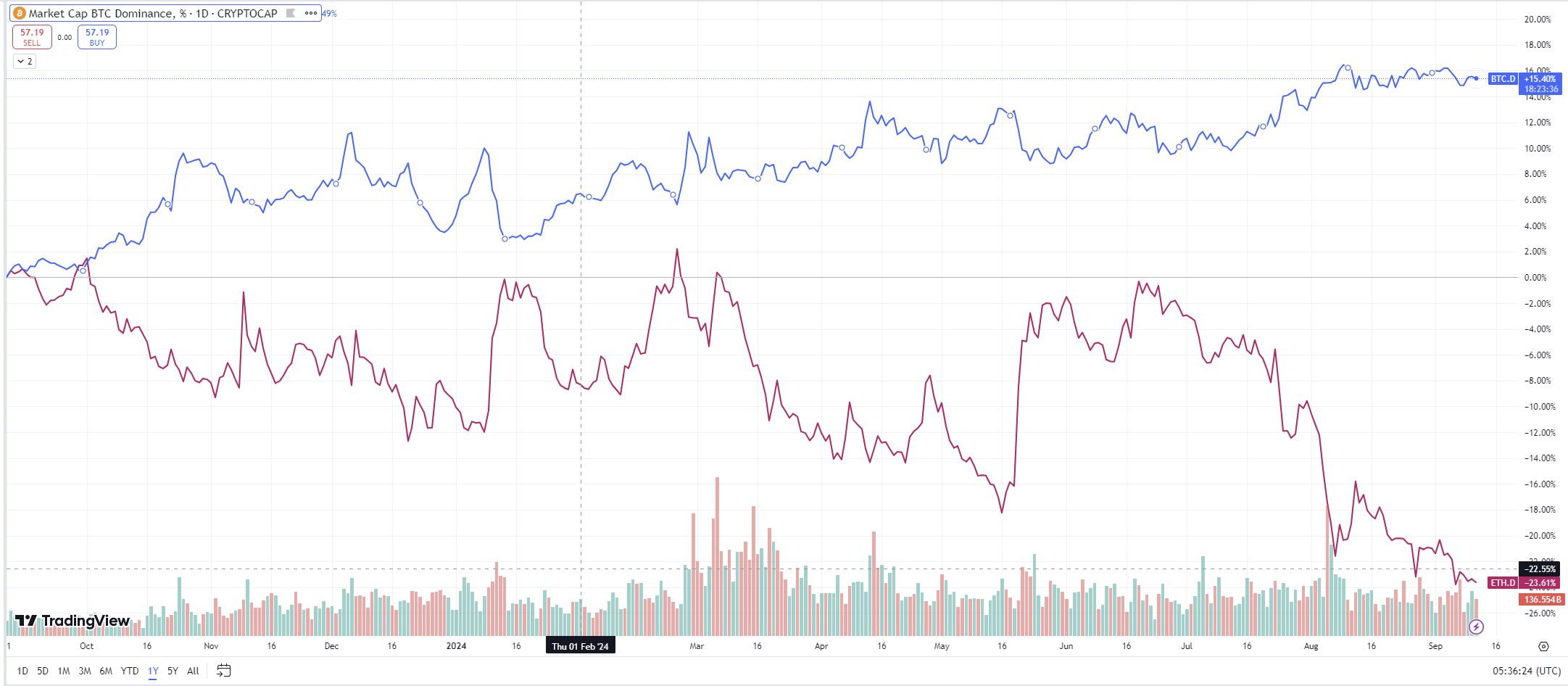 宏观视角下,「四年一次确定性牛市」的恒纪元不再持续。自 2024 年 Q2 以来,市场陷入了反常的低流动性状态。一方面,BTC 占有率的顶部滞后于 BTC 价格的顶部。在过去几轮周期中,BTC 占有率的顶部通常对应市场周期的底部,但本轮牛市 BTC 突破新高并未带来山寨币的普涨,包括 ETH。这也证明证明了一点:陷入危机的并不只是 VC 币,而是所有代币或者整个加密市场。