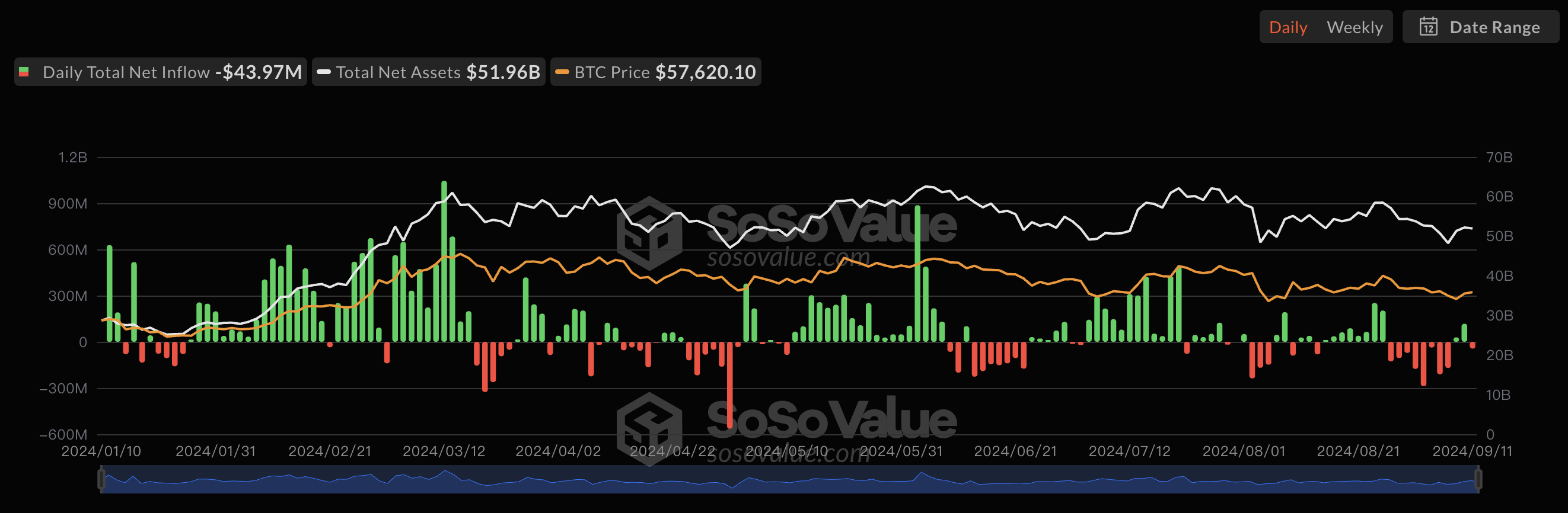 每日市场整体资金热度(根据资金费率反映)与流入流出(根据 ETF 流入流出反映)观察