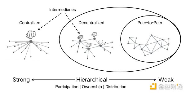 图 1:P2P 旨在避免参与、所属和分配方面的中心化