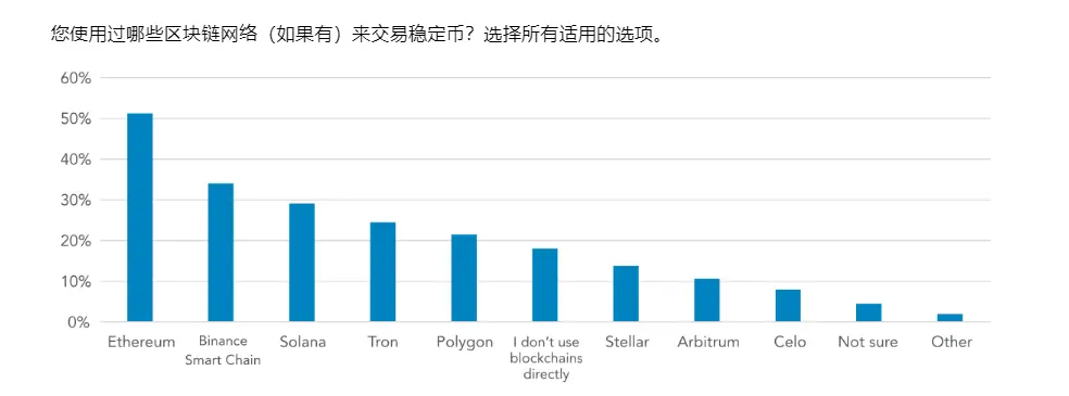 以太坊是受抽样用户欢迎的区块链,其次是币安智能链、Solana 和 Tron