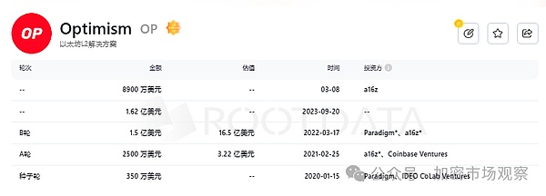 Arbi的私募估值是12亿美金;OP在2022年5月就发币了,发币前的估值是16.5亿美金。