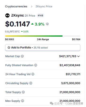 zksync号称募资4.58亿美元,现在流动市值只有4亿,大部分都没解锁呢,FDV也只有24亿美金。
