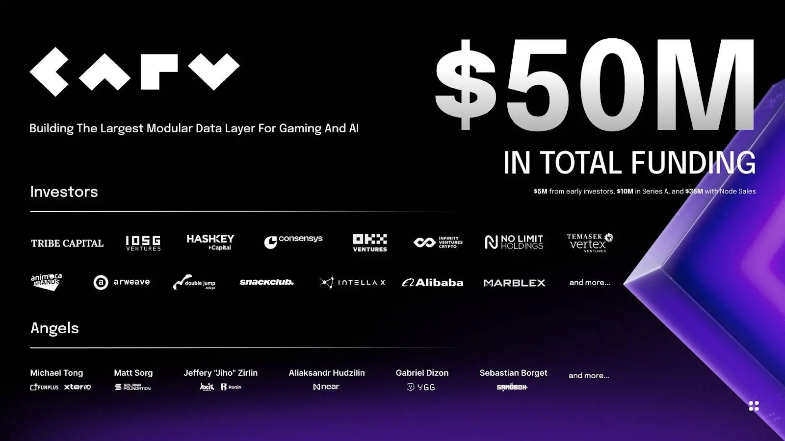 据目前披露的消息,CARV 已完成多轮融资,累计吸引超 5000 万美元融资,这个额度不管放在 Web3 哪个赛道都称得上是大体量。
