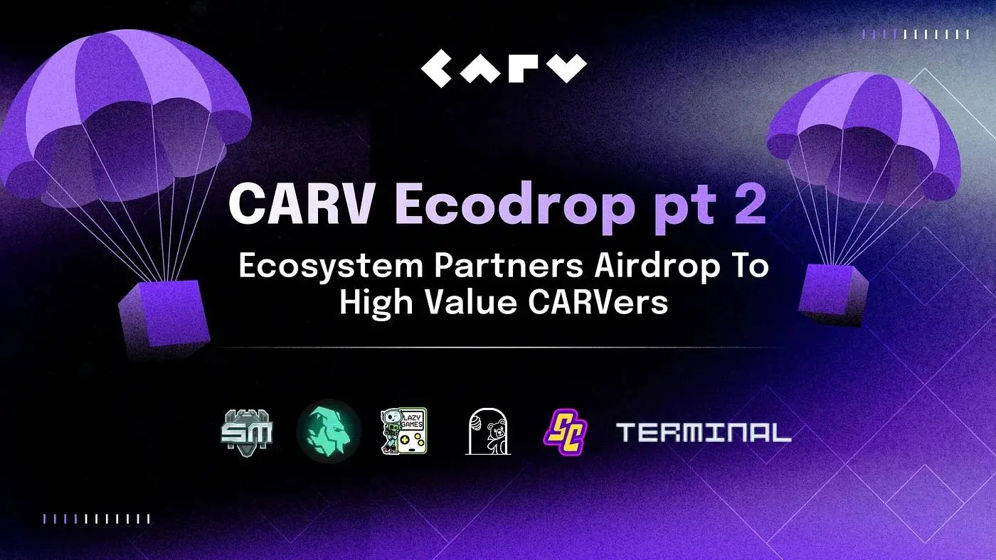 而目前根据官网博文显示,CARV Ecodrop pt 2 活动即将到来,本次活动 CARV 同样联合了包括 Space Mavericks、Lazy Games、Super Champs、Goat Gaming、Terminal、BeraSig 在内的六家生态优质游戏项目,参与者通过积极参与游戏互动、完成相关任务即可参与瓜分价值 50 万美元的额外奖励。在代币 TGE 之外,参与 CARV Ecodrop pt 2 也不失为一种深入探索生态、赢取更多奖励的好方式。