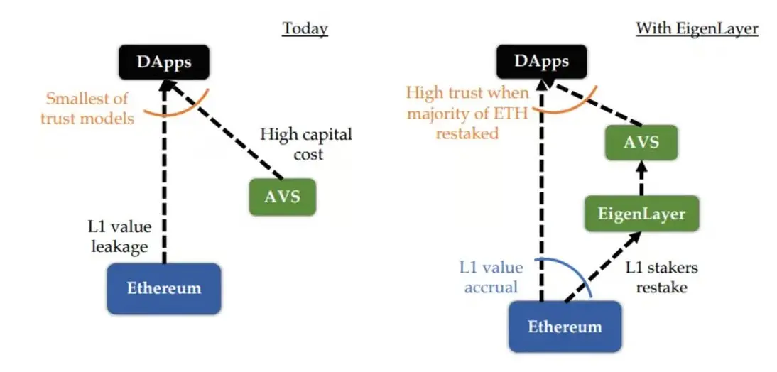 为了简化讨论,我可能会在本文中提到 EigenLayer 或 AVS 来描述广义的再质押概念,但我将这个术语广泛用于涵盖所有再质押协议及其上构建的服务,而不仅限于 EigenLayer。