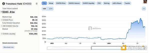 根据 DeFiLlama 最新数据,截至 2024 年 9 月,Tranchess 在 BNB Chain 上的 TVL达到 1.83 亿美元,年内增长接近 500%。
