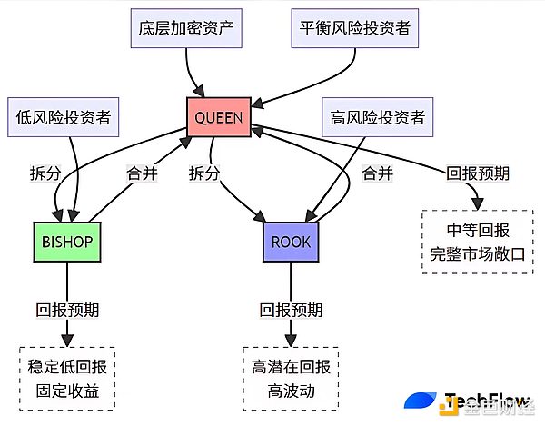由 QUEEN 拆分成的两种衍生代币 BISHOP 和 ROOK,代表不同的风险和收益特征。
