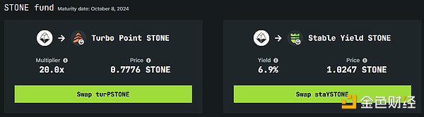 不仅限于 STONE 基金,当前已推出的 Turbo&Stable 产品还有同 eth.fi 合作推出的 weETH 基金、与 LIDO 合作的 Staked ETH 基金、与 SOLV 合作的 SolvBTC 与同 Lista DAO 合作的 slisBNB ,以及近期上线的 SolvBTC.BBN 基金。