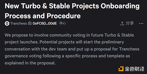 近期 Tranchess 社区通过的 治理提案9 提出未来 veCHESS 的投票治理权益可拓展到所有新 Turbo&Stable 项目启动的决定层。这一提案进一步拓展 veCHESS 更多用例的同时展现了 Turbo&Stable 架构可快速复制的未来潜力。