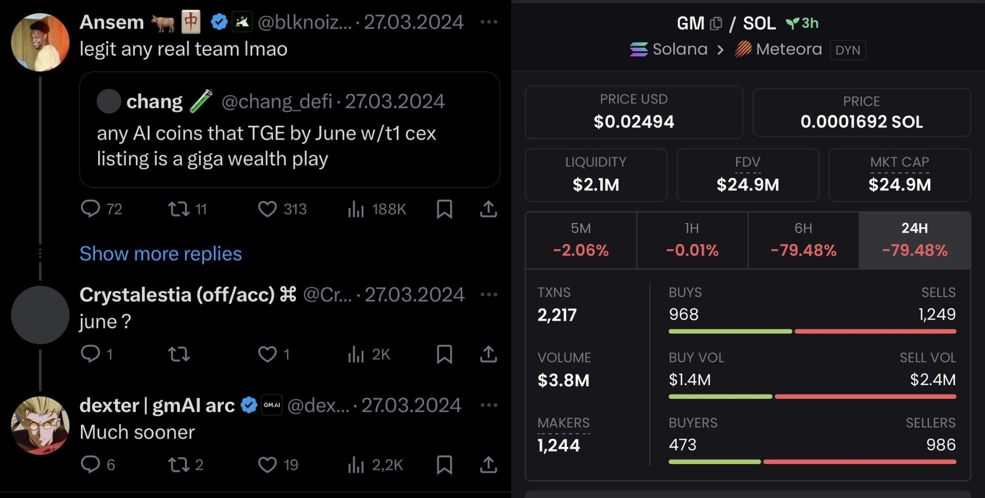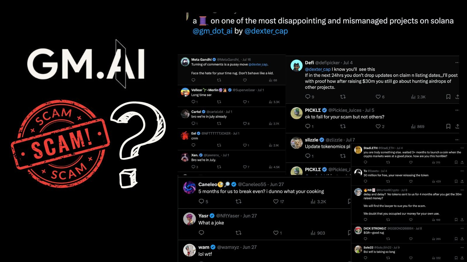 编者语:今年 3 月 18 日,Whales Market 创始人 dexter 宣布开启其在 Solana 上的 AI 项目代币预售,仅半小时内就筹集了 155,364 枚 SOL(约 3200 万美元),超过 3000 万美元预售硬顶。但 dexter 却在预售完成次日,将预售资金存入了 Binance。数月过去,终于在 8 月 14 日,gm.ai 官方宣布GM 代币上线。然而,间隔如此之久,预售参与者们等来的却是上线立亏百分百。参与者们被割得体无完肤,称得上是币圈年度大骗局。加密 KOL 0xkevin 在 X 上对这场骗局的始作俑者进行了曝光,BlockBeats 转载全文如下: