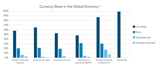 为什么稳定币如此压倒性地美元化仍然是一个有趣的问题。美元是全球储备货币,但在其他任何使用类别中,美元都没有像稳定币那样占据主导地位。