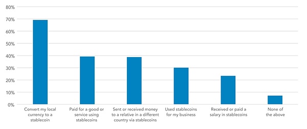调查结果很明确:在接受调查的国家中,非加密货币用途占稳定币使用模式的很大一部分。