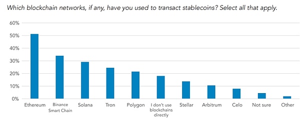 以太坊是抽样用户中最受欢迎的区块链,其次是 BSC、Solana 和 Tron;