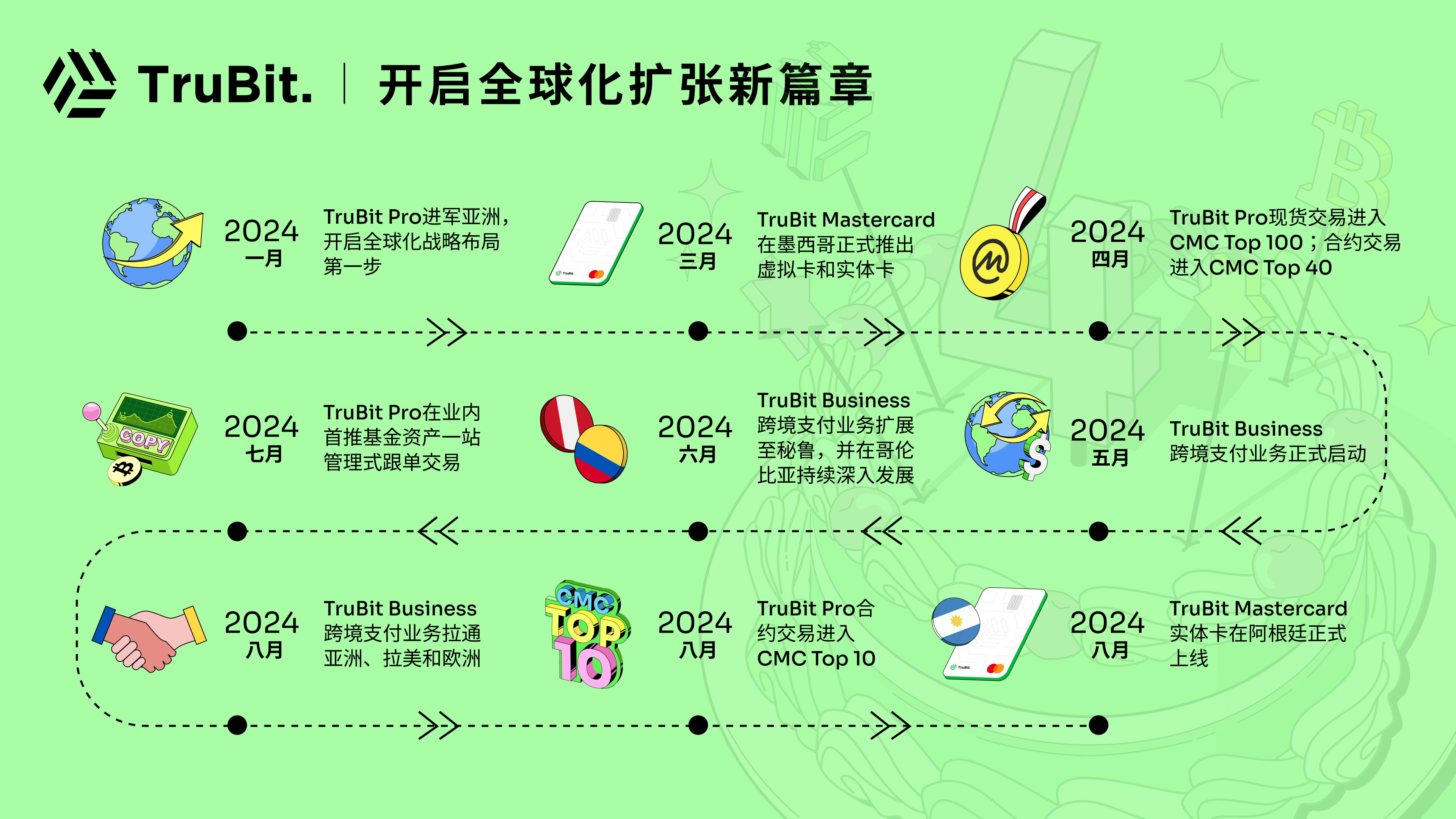 TruBit Pro 合约业务的全球扩展,充分体现了其在行业中的领导地位。作为一个承载着百万用户信赖的全球性合规交易平台,TruBit Pro 将继续致力于为用户提供极致的加密货币投资体验,一同迈向下一个里程碑。