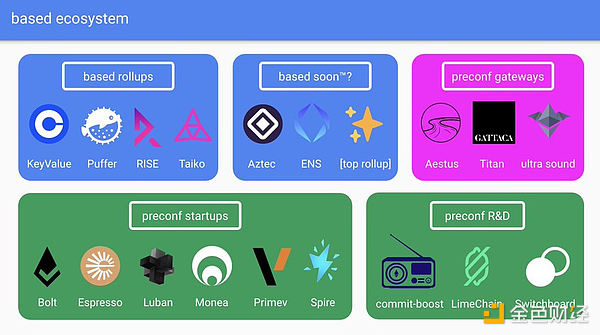 除了上面提到的两个项目之外,还有一些预确认相关的内容值得关注。例如,Primev 推出了 mev-commit 平台。Primev 可以通过 mev-commit 为任何 Based Rollup 提供预确认服务,并提出了一种结合 mev-commit 和包含列表(IL)的 blob 预确认解决方案;Espresso 则提出了 Proposer-promised 预确认方案,每个 Rollup 可以自定义 Proposer-promised 预确认的排序顺序和罚没条件;Spire 推出了 Preconfirmation Registry,这是一个供提议者(如大型运营商和独立质押者)以 ETH 发布抵押品的系统;Chainbound 则宣布了 Bolt,这是一种协议,允许以太坊提议者就其区块内容做出承诺。
