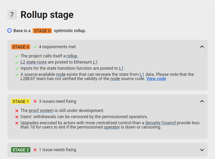 即便如此,L2Beat 目前将 ZKsync Era 归类为第 0 阶段,因为它尚未完成对网络第 1 阶段元素的评估。