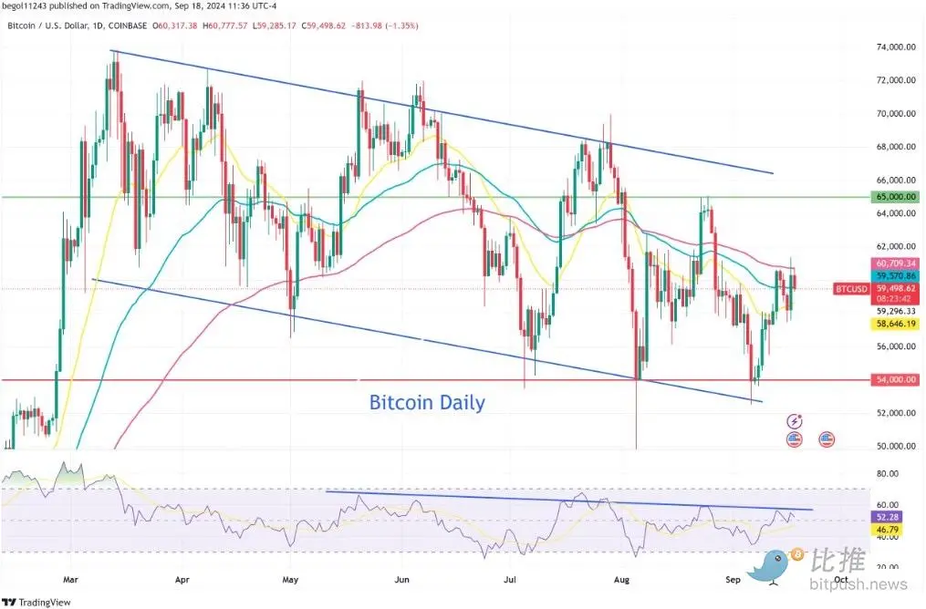 从技术角度来看,Secure Digital Markets 分析师指出,周二 BTC 试图突破 61,000 美元的尝试失败,华尔街收盘后价格回落。日线图显示,100 日移动平均线明显出现看跌拒绝,并且过去一个月持续出现低位走势。