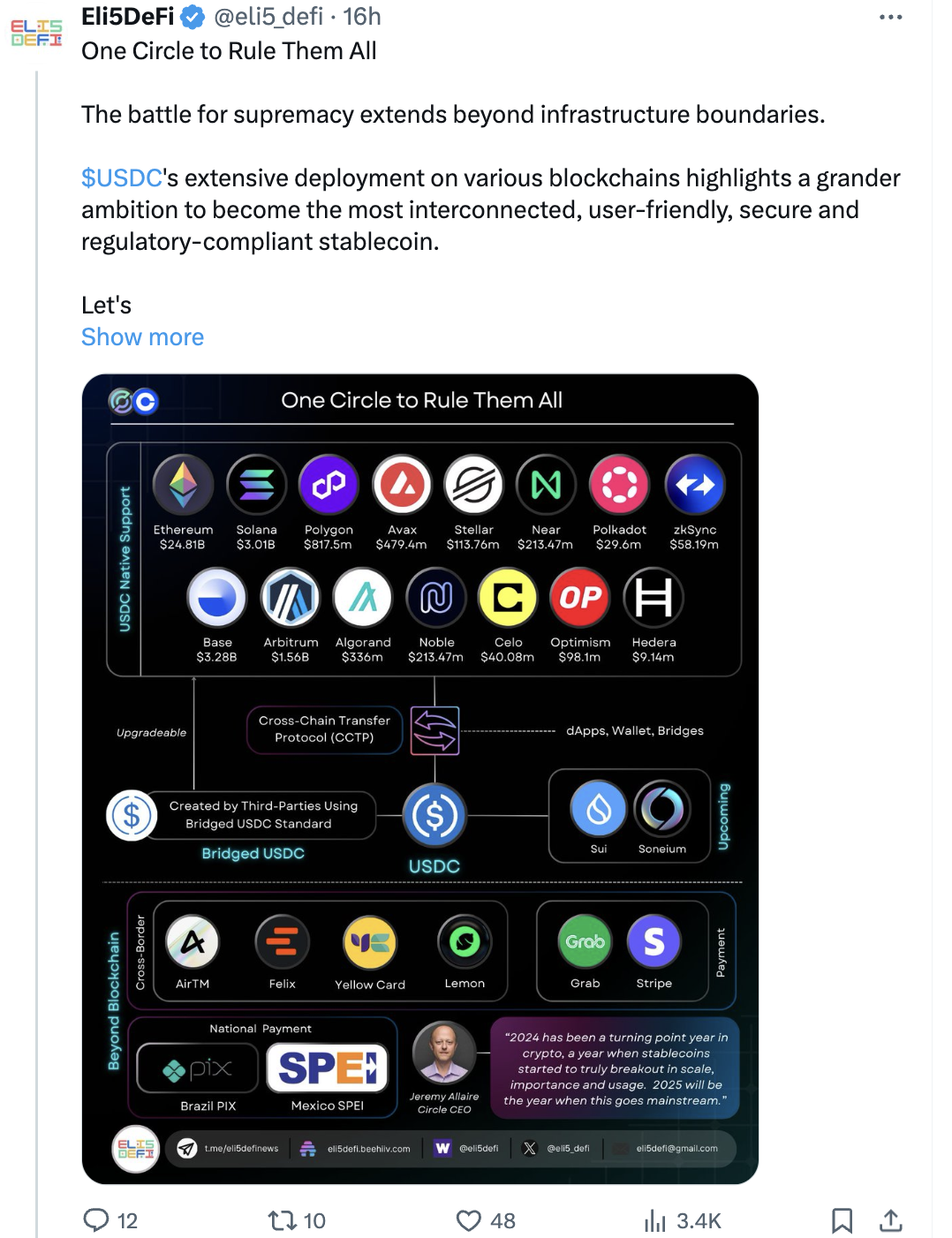 2.USDC 在各个链上的拓展情况,以及通过与公链合作后在应用端的发展情况。@eli5_defi