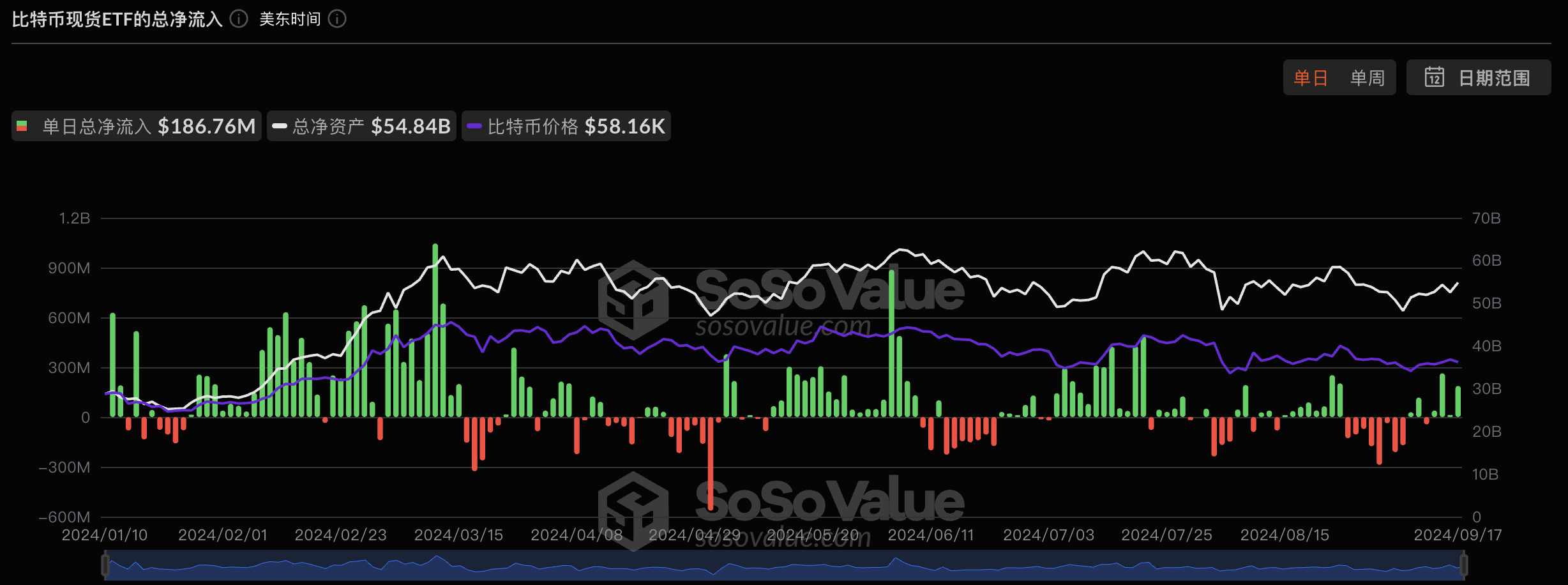 每日市场整体资金热度(根据资金费率反映)与流入流出(根据 ETF 流入流出反映)观察