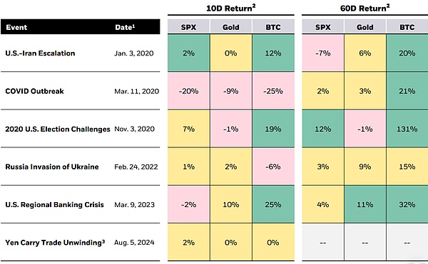 2.S&P 500、黄金和比特币在重大地缘政治事件中的表现