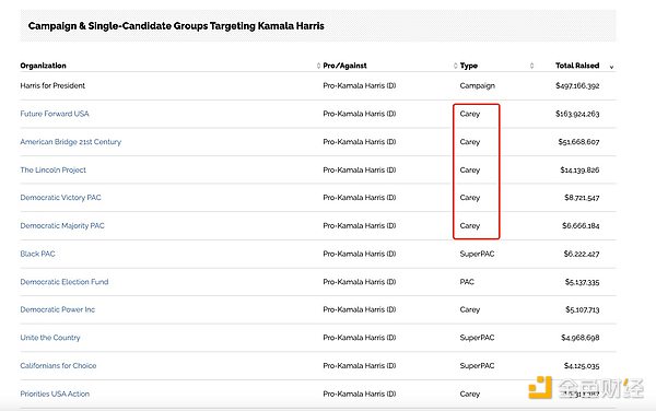 而从具体的资金渠道上来看,哈里斯的外部资金筹集渠道主要通过 Carey Commitee,而特朗普则是以 SuperPAC 为主,这两个组织都属于刚刚介绍的 527 organization,具有无限额的资金捐助的优势,然而在资金支出上,前者拥有更大的灵活的,Carey Committee 有两个独立的资金账户:一个账户用于传统的有限制捐款(可以直接捐给候选人和政党),另一个账户则用于不受限的独立支出(用于广告、宣传等)。然而 Super PAC 则不能直接与候选人的竞选团队或政党协调,也不能直接捐款给候选人。这让特朗普团队在资金使用效率上也远远弱于哈里斯团队。
