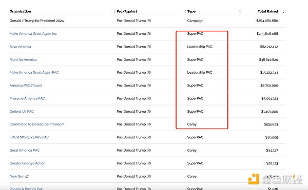 由于具有立法权,这个过程中政商之间就会形成一些利益集团,一些体量大的企业家会选择资助一些政客,来换取该政客在竞选成功后对一些符合自身利益的法案的推动。而这笔捐赠就是所谓的政治献金。为了不至于出现过度寻租,从而产生最恶劣的贪腐行为,美国法律为此设计了一些法案旨在将整个过程规范化,其中「527 organization」就是为候选人设计的一种免税的用于筹集资金以支持选举的组织,当然还细分很多种,具体对接收资本的规模,使用的方式等维度有不同的设计。