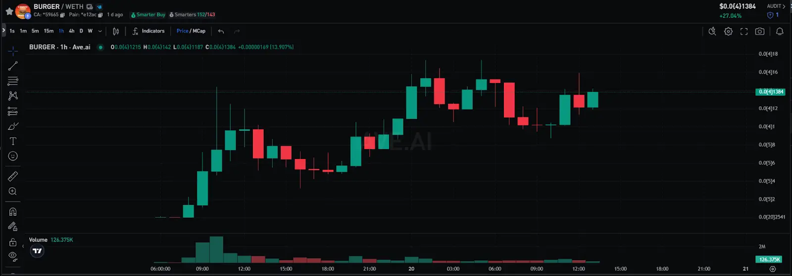 $ BURGER 官方推特在早上 6 点 35 分发布了首条推文。随后的两个小时内,市值迅速飙升,至上午 10 点时已攀升至 600 万美元,短短 4 小时内涨幅高达 600 倍,24 小时交易额突破 1500 万美元。目前, MEXC 、 AscendEX 等交易所已宣布上线 $ BURGER ,价格接近历史高点,市场预期其有望再创新高。